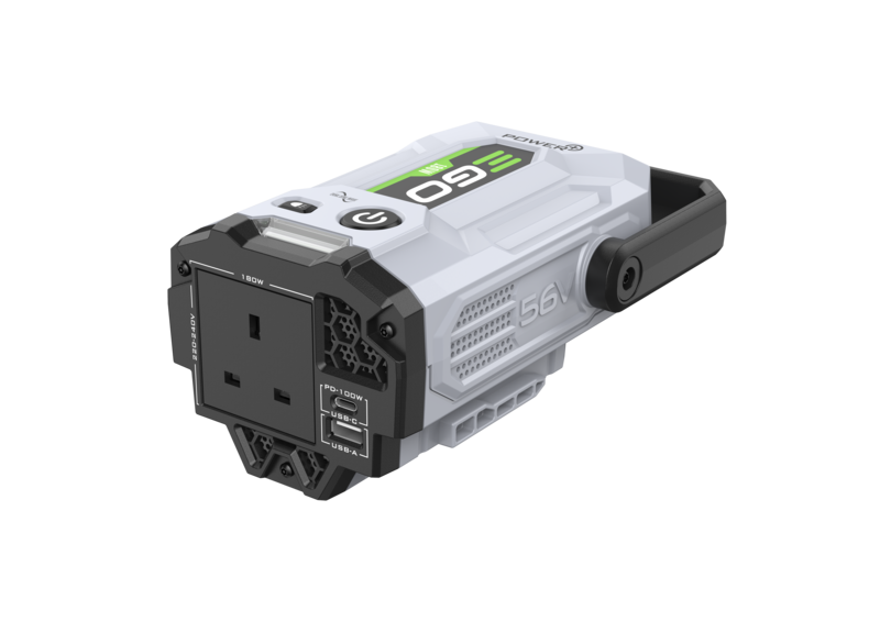 Der Nexus Escape ist kompatibel mit allen EGO 56V-ARC-Lithium™ Akkus und bietet flexible Möglichkeiten zum Laden und Betreiben von Mobiltelefonen, Laptops, Kameras, Lampen und anderen elektrischen Geräten mit einer maximalen Leistung von 400 Watt.