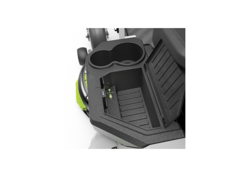 Das ist noch nicht alles: 32 lichtstarke LED-Leuchten verbessern Ihre Sicht, wenn die Bedingungen schwieriger werden. Das Gerät besitzt auch einen Getränkehalter für große Becher, damit Sie während der Arbeit immer genug trinken können. Außerdem gibt es ein Staufach mit einem Steckplatz für Ihr Mobiltelefon, das Sie über den praktischen USB-Anschluss auch während der Fahrt aufladen können.
