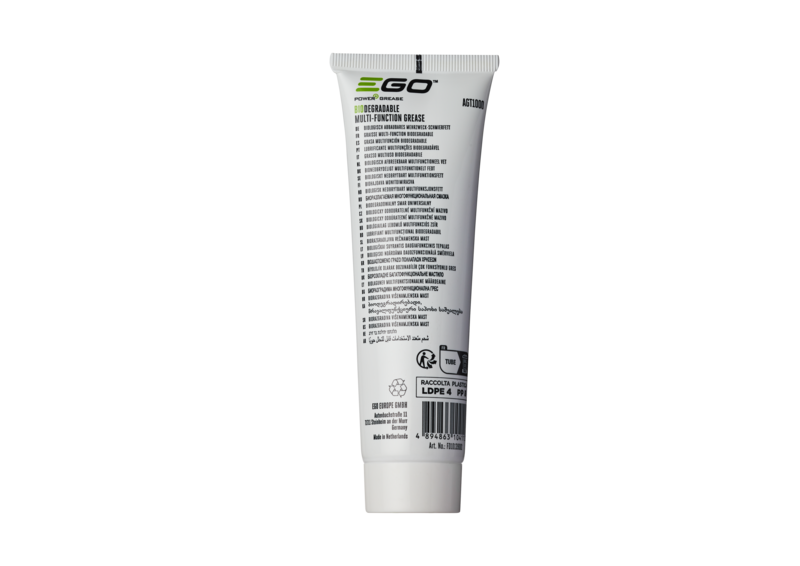 Stellen Sie sicher, dass Ihre EGO Heckenscheren und Freischneider mit dem AGT1000 Bio-Fett zu Höchstleistungen auflaufen. Diese 100 g biologisch abbaubaren Fettes wurden speziell entwickelt, um eine hervorragende Schmierung zu gewährleisten, die Reibung zu minimieren und die Lebensdauer Ihrer Geräte zu verlängern - und das alles auf umweltfreundliche Weise.